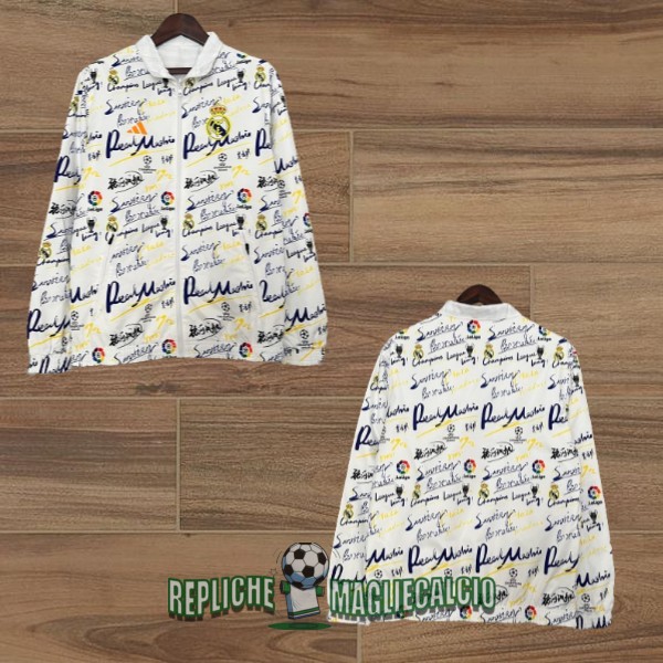 giacca a vento real madrid a doppio strato bianco 2024-2025